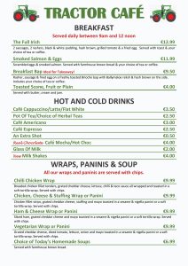 Making your day out complete our Tractor Cafe serves a tasty menu that is sure to suit all the family. Serving food from opening to close daily, whether its takeaway you’re after or have a little more time to relax and enjoy your meal at a table in our light filled cafe..