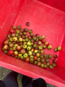 We picked the apples over two days in August. Picking by hand into crates, careful not to bruise the apples or damage the branches during picking, we gathered hundreds and hundreds of apples.